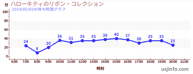 • ハローキティのリボン・コレクション$B$N(B2019年05月02日の待ち時間