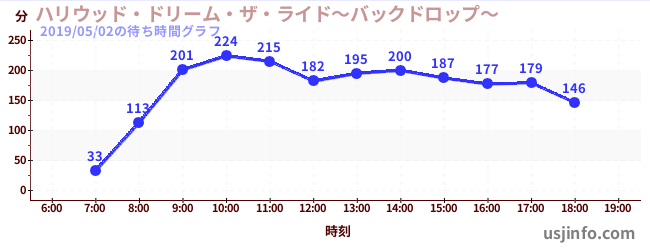 • ハリウッド・ドリーム・ザ・ライド〜バックドロップ〜$B$N(B2019年05月02日の待ち時間