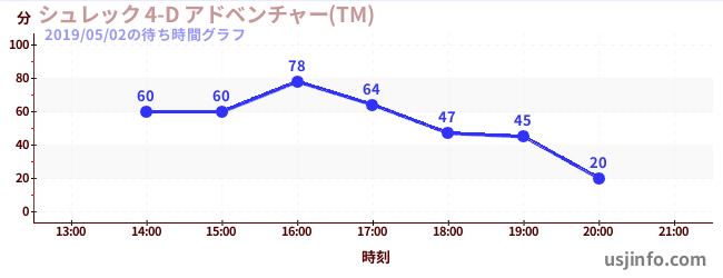 • シュレック 4-D アドベンチャー(TM)$B$N(B2019年05月02日の待ち時間