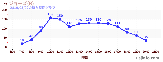 • ジョーズ(R)$B$N(B2019年05月02日の待ち時間