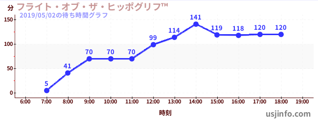• フライト・オブ・ザ・ヒッポグリフ™$B$N(B2019年05月02日の待ち時間