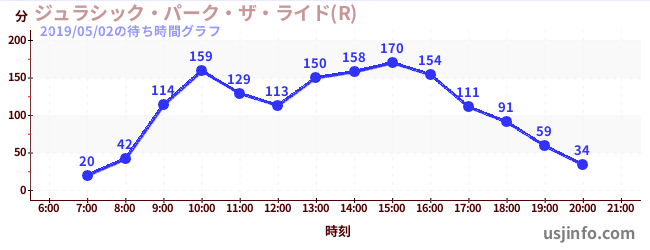 • ジュラシック・パーク・ザ・ライド(R)$B$N(B2019年05月02日の待ち時間