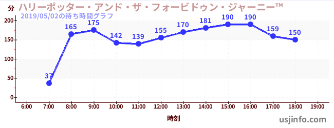 • ハリーポッター・アンド・ザ・フォービドゥン・ジャーニー™$B$N(B2019年05月02日の待ち時間