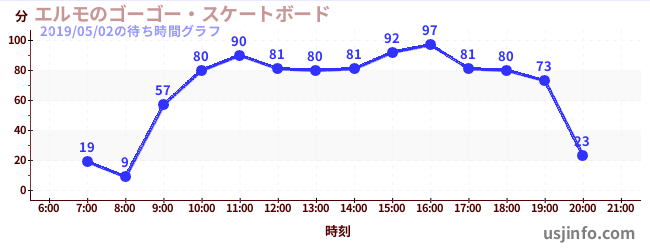• エルモのゴーゴー・スケートボード$B$N(B2019年05月02日の待ち時間