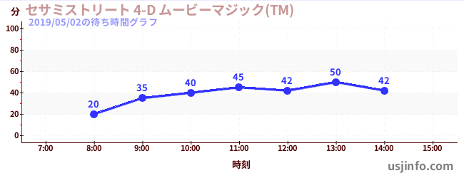 • セサミストリート 4-D ムービーマジック(TM)$B$N(B2019年05月02日の待ち時間