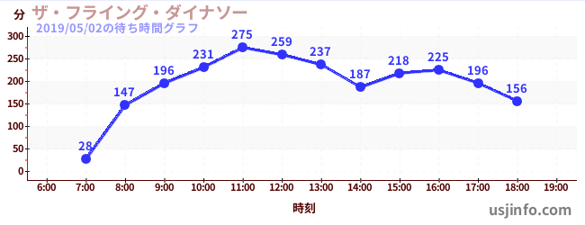 • ザ・フライング・ダイナソー$B$N(B2019年05月02日の待ち時間