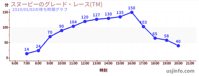 • スヌーピーのグレード・レース(TM)$B$N(B2019年05月02日の待ち時間