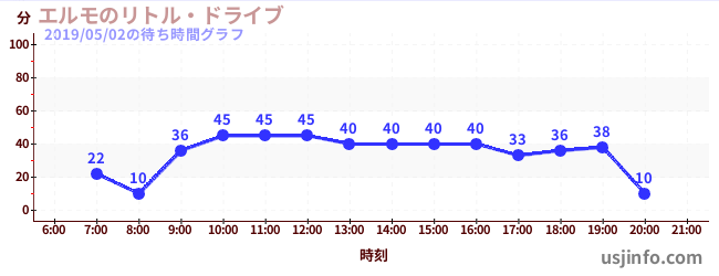 • エルモのリトル・ドライブ$B$N(B2019年05月02日の待ち時間