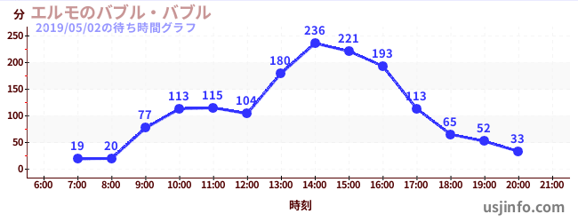 • エルモのバブル・バブル$B$N(B2019年05月02日の待ち時間