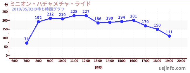 • ミニオン・ハチャメチャ・ライド$B$N(B2019年05月02日の待ち時間