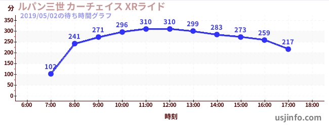 • ルパン三世 カーチェイス XRライド$B$N(B2019年05月02日の待ち時間