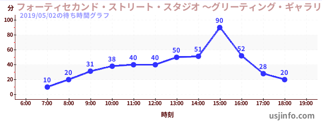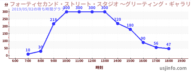 • フォーティセカンド・ストリート・スタジオ ~グリーティング・ギャラリー~ ミニオン$B$N(B2019年05月02日の待ち時間