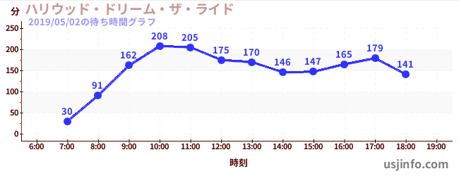 • ハリウッド・ドリーム・ザ・ライド$B$N(B2019年05月02日の待ち時間