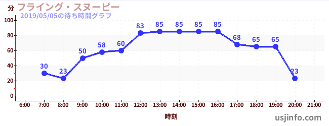 • フライング・スヌーピー$B$N(B2019年05月05日の待ち時間