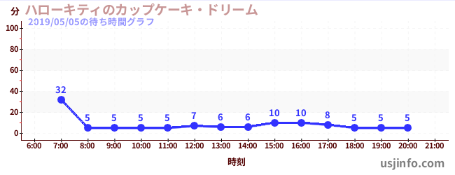 • ハローキティのカップケーキ・ドリーム$B$N(B2019年05月05日の待ち時間