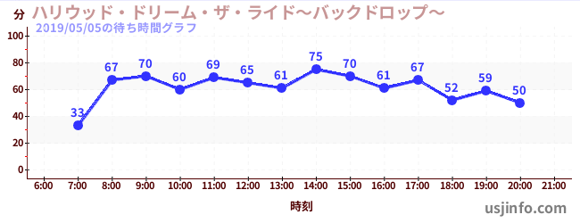 • ハリウッド・ドリーム・ザ・ライド〜バックドロップ〜$B$N(B2019年05月05日の待ち時間