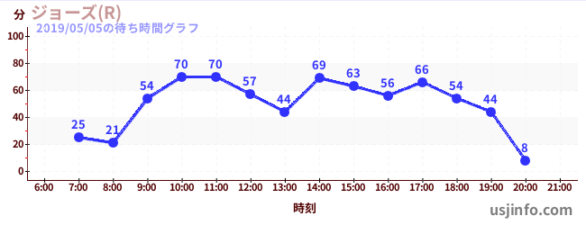 • ジョーズ(R)$B$N(B2019年05月05日の待ち時間