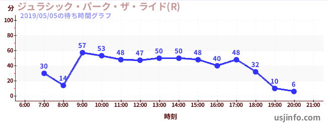 • ジュラシック・パーク・ザ・ライド(R)$B$N(B2019年05月05日の待ち時間