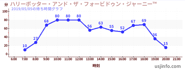 • ハリーポッター・アンド・ザ・フォービドゥン・ジャーニー™$B$N(B2019年05月05日の待ち時間