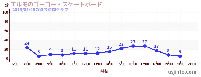 • エルモのゴーゴー・スケートボード$B$N(B2019年05月05日の待ち時間