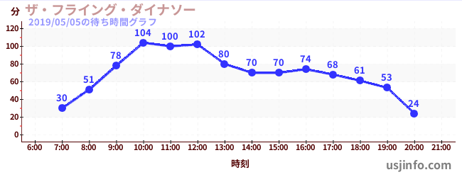 • ザ・フライング・ダイナソー$B$N(B2019年05月05日の待ち時間
