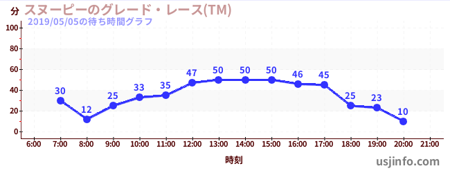 • スヌーピーのグレード・レース(TM)$B$N(B2019年05月05日の待ち時間