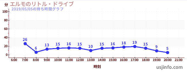 • エルモのリトル・ドライブ$B$N(B2019年05月05日の待ち時間