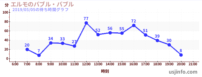 • エルモのバブル・バブル$B$N(B2019年05月05日の待ち時間