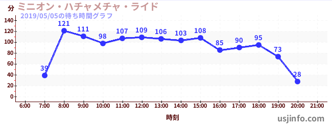 • ミニオン・ハチャメチャ・ライド$B$N(B2019年05月05日の待ち時間