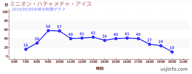 • ミニオン・ハチャメチャ・アイス$B$N(B2019年05月05日の待ち時間