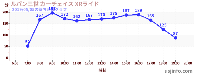 • ルパン三世 カーチェイス XRライド$B$N(B2019年05月05日の待ち時間