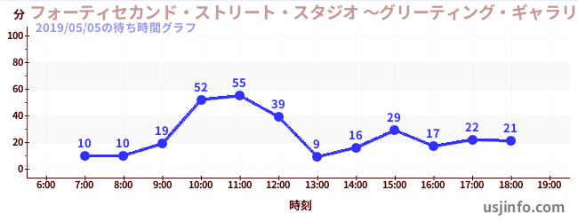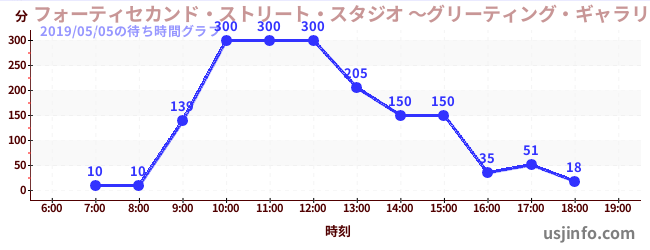 • フォーティセカンド・ストリート・スタジオ ~グリーティング・ギャラリー~ ピーナッツの仲間たち$B$N(B2019年05月05日の待ち時間