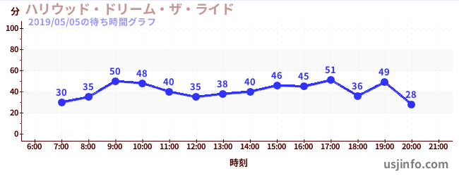 • ハリウッド・ドリーム・ザ・ライド$B$N(B2019年05月05日の待ち時間