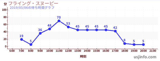 • フライング・スヌーピー$B$N(B2019年05月06日の待ち時間