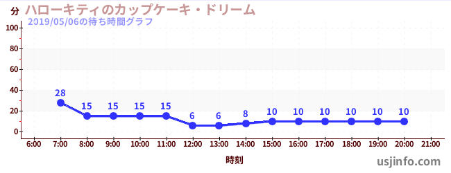 • ハローキティのカップケーキ・ドリーム$B$N(B2019年05月06日の待ち時間