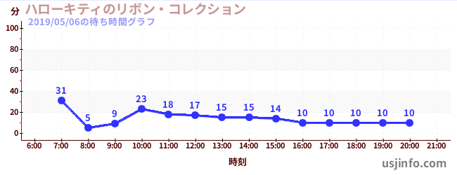 • ハローキティのリボン・コレクション$B$N(B2019年05月06日の待ち時間