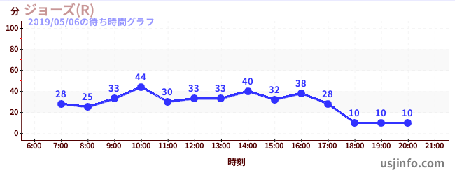 • ジョーズ(R)$B$N(B2019年05月06日の待ち時間
