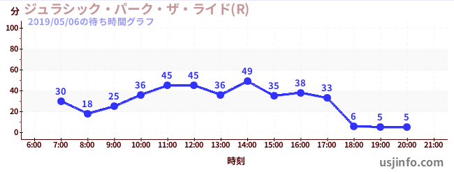• ジュラシック・パーク・ザ・ライド(R)$B$N(B2019年05月06日の待ち時間