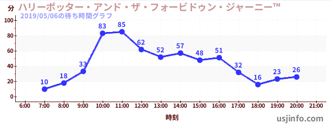 • ハリーポッター・アンド・ザ・フォービドゥン・ジャーニー™$B$N(B2019年05月06日の待ち時間
