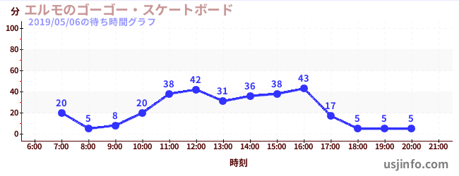 • エルモのゴーゴー・スケートボード$B$N(B2019年05月06日の待ち時間