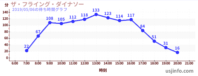 • ザ・フライング・ダイナソー$B$N(B2019年05月06日の待ち時間