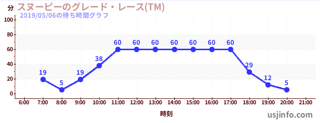 • スヌーピーのグレード・レース(TM)$B$N(B2019年05月06日の待ち時間