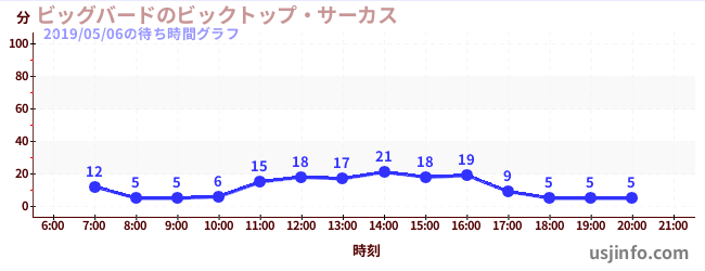 • ビッグバードのビックトップ・サーカス$B$N(B2019年05月06日の待ち時間