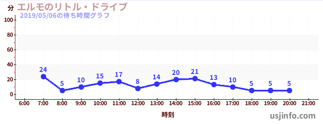 • エルモのリトル・ドライブ$B$N(B2019年05月06日の待ち時間