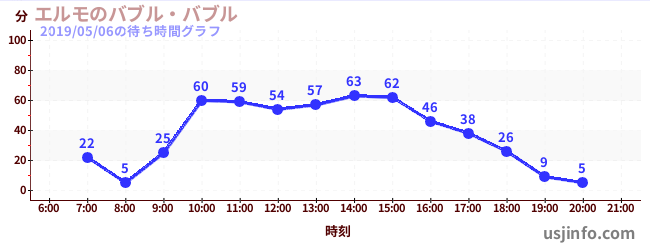 • エルモのバブル・バブル$B$N(B2019年05月06日の待ち時間