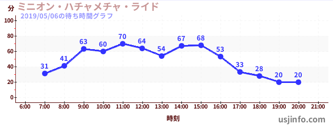 • ミニオン・ハチャメチャ・ライド$B$N(B2019年05月06日の待ち時間