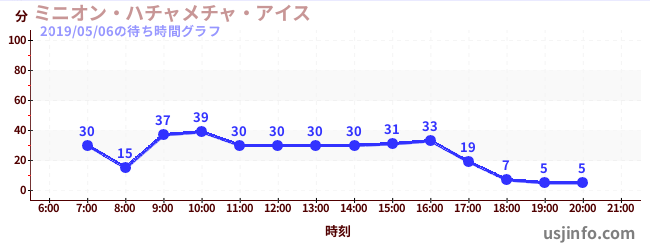 • ミニオン・ハチャメチャ・アイス$B$N(B2019年05月06日の待ち時間