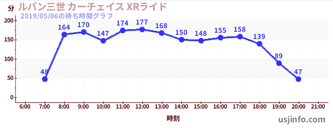 • ルパン三世 カーチェイス XRライド$B$N(B2019年05月06日の待ち時間