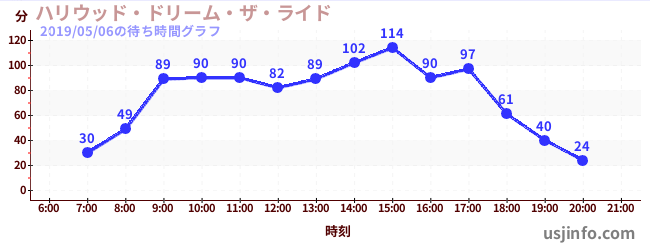 • ハリウッド・ドリーム・ザ・ライド$B$N(B2019年05月06日の待ち時間