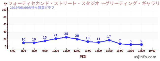 • フォーティセカンド・ストリート・スタジオ ~グリーティング・ギャラリー~ ピーナッツの仲間たち$B$N(B2019年05月06日の待ち時間